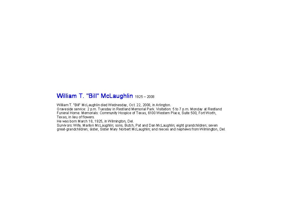 William T. "Bill" McLaughlin March 25, 1925 - Oct. 22, 2008