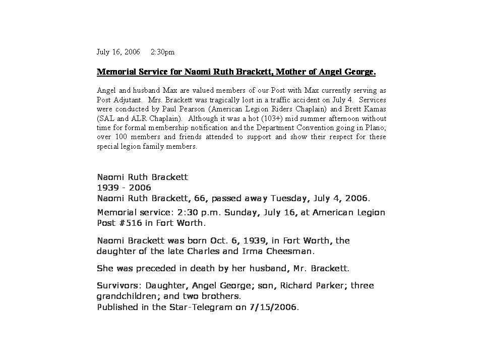 Naomi Ruth brackett Oct. 6, 1939 - July 4, 2006