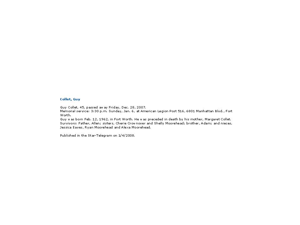 Guy Collet Feb. 12, 1962 - Dec. 28, 2007