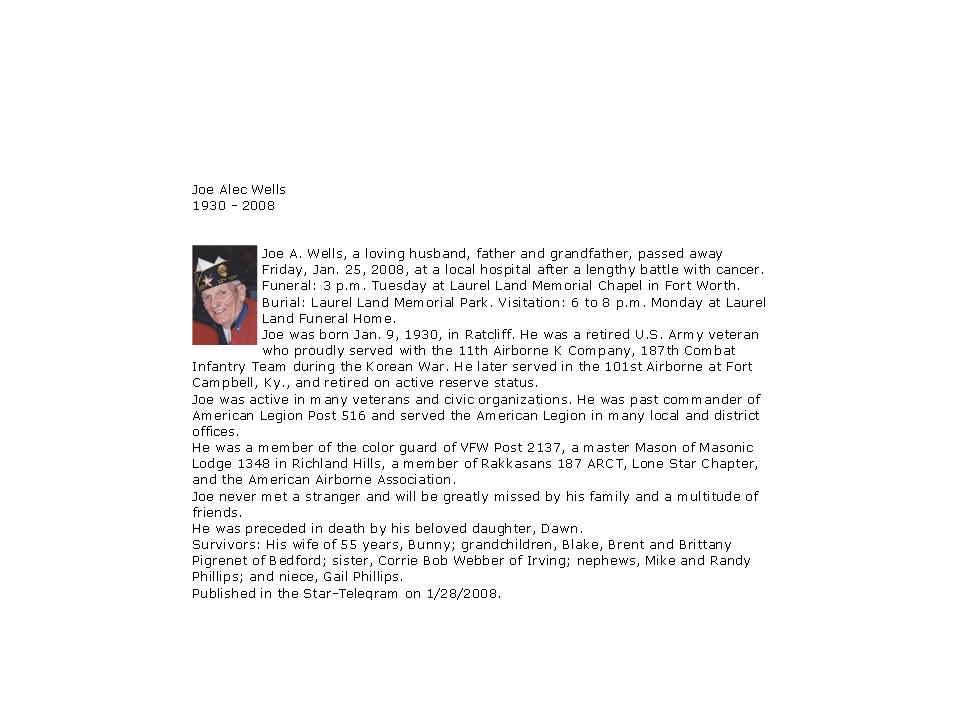 Past Post 516 Commander Joe Wells